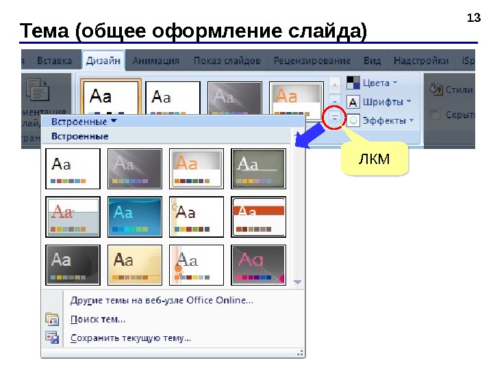Окно программы 8 Лента (инструменты) Слайд Все слайды Заметки Режимы Масштаб