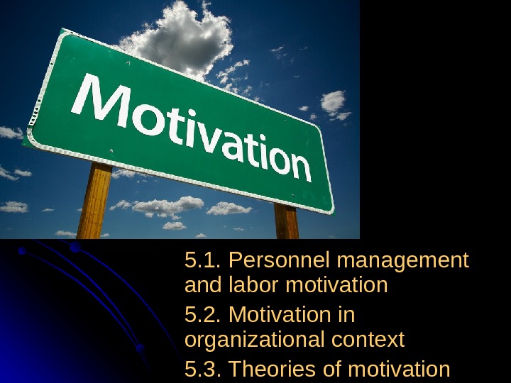 5. 1. Personnel management and labor motivation 5. 2. Motivation in organizational context 5. 3. Theories of motivation
