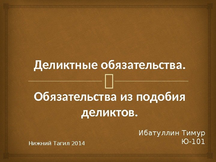 Деликтные обязательства. Обязательства из подобия деликтов. Ибатуллин Тимур Ю-101 Нижний Тагил