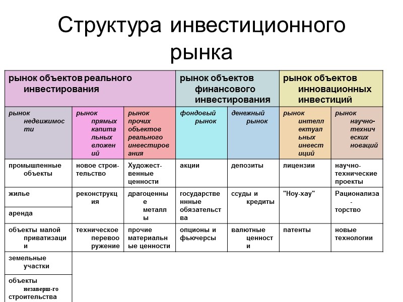 Структура инвестиционного рынка