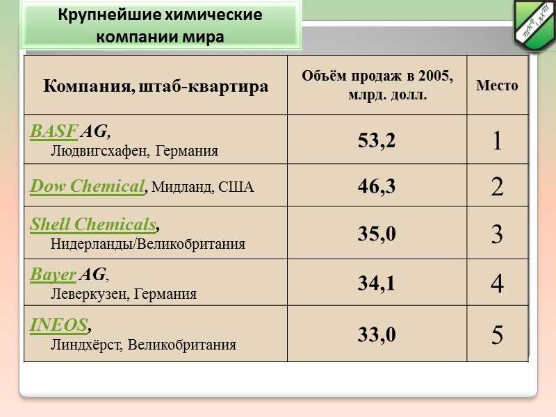 2. История развития химической промышленности Более 2000 лет назад - сера, природная сода и минеральные краски были известны в Риме и Византии XV в. - в Европе стали появляться мелкие специализированные цеха по производству кислот, солей, щелочей, фармацевтических препаратов