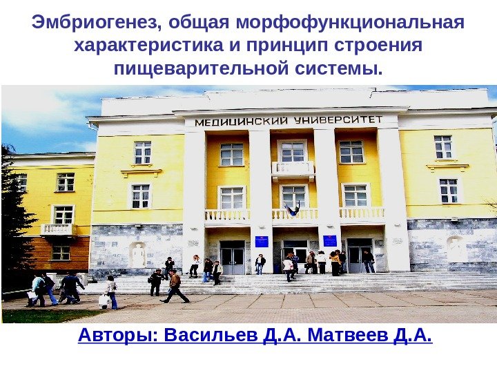 Эмбриогенез, общая морфофункциональная характеристика и принцип строения пищеварительной системы. Авторы: Васильев Д. А. Матвеев Д. А.