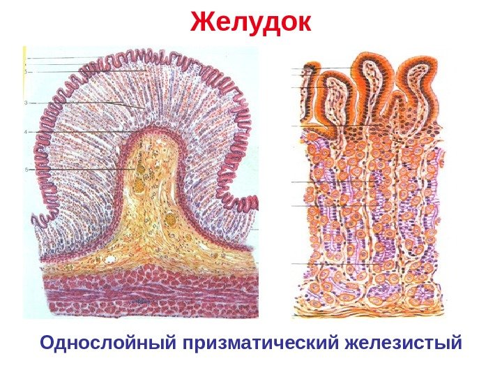 Желудок Однослойный призматический железистый