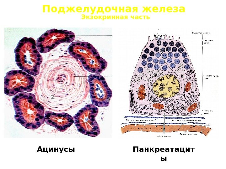 Поджелудочная железа 3 1 2 Экзокринная часть Ацинусы Панкреатацит ы