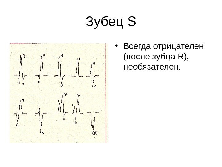 Зубец S • Всегда отрицателен (после зубца R) , необязателен.