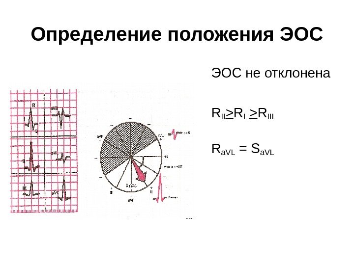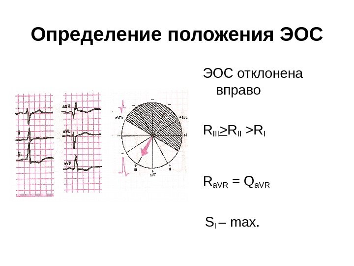 Определение положения ЭОС отклонена влево RI > RII >RIII R II = SII R a. VL – max. SIII – max.