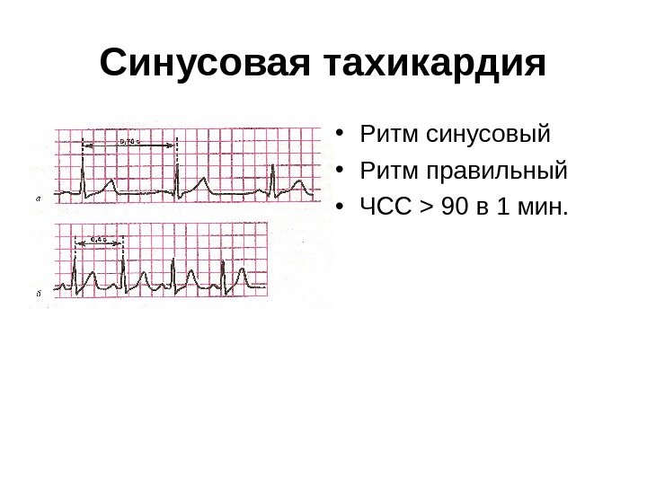 Синусовая тахикардия • Ритм синусовый • Ритм правильный • ЧСС > 90 в 1 мин.