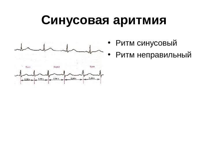 C инусовая аритмия • Ритм синусовый • Ритм неправильный