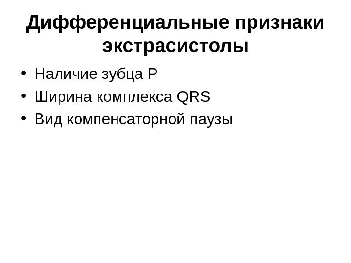 Дифференциальные признаки экстрасистолы • Наличие зубца Р • Ширина комплекса QRS • Вид компенсаторной паузы