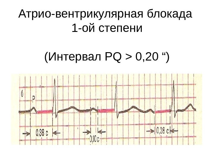 Атрио-вентрикулярная блокада 1 -ой степени ( Интервал Р Q > 0, 20 “)