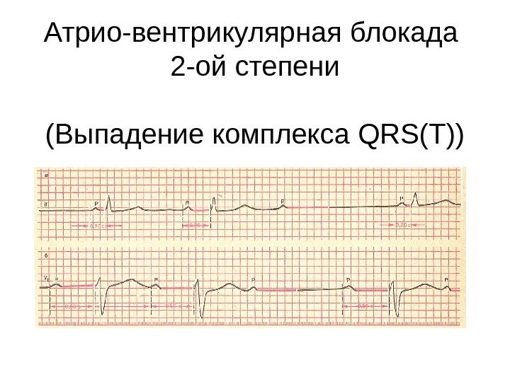 Атрио-вентрикулярная блокада 2 -ой степени ( Выпадение комплекса QRS(T))