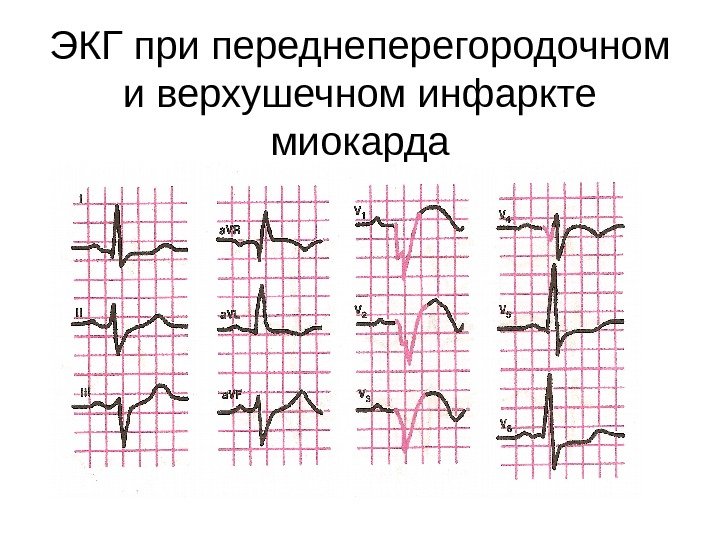 ЭКГ при переднеперегородочном и верхушечном инфаркте миокарда