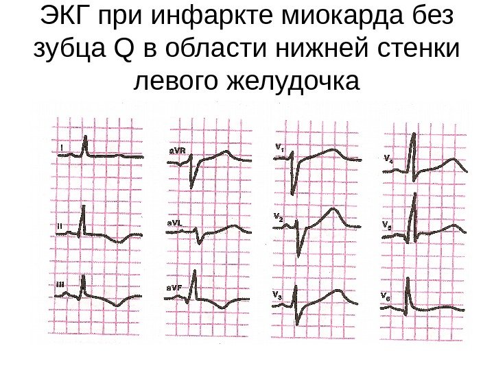 ЭКГ при инфаркте миокарда без зубца Q в области нижней стенки левого желудочка