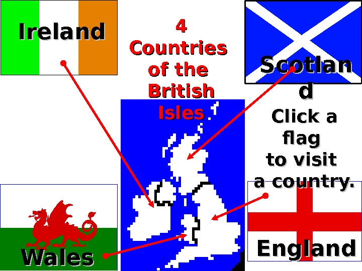 England Wales Scotlan dd 4 4 Countries of the British Isles Click a flag to visit a country. Ireland