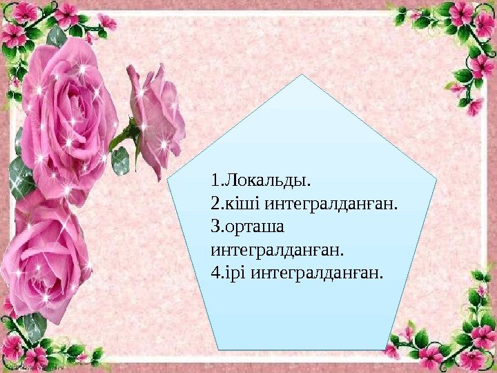 1. Локальды. 2. кіші интегралдан ан. ғ 3. орташа интегралдан ан. ғ 4. ірі интегралдан ан. ғ