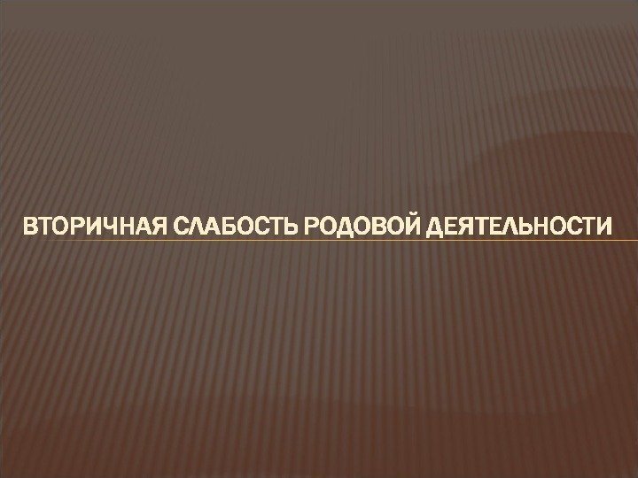 Вторичная слабость родовой деятельности осложняет течение родового акта у женщин, имеющих следующие особенности: отягощенный акушерско-гинекологический анамнез (нарушения менструального цикла, бесплодие, аборты, невынашивание, осложненное течение родов в прошлом, заболевания половой системы); осложненное течение настоящей беременности (гестоз, анемия, иммунологический конфликт во время беременности, плацентарная недостаточность, перенашивание); соматические заболевания (болезни сердечно-сосудистой системы, эндокринная патология, ожирение, инфекции и интоксикации); осложненное течение настоящих родов (длительный безводный промежуток, крупный плод, тазовое предлежание плода, многоводие, первичная слабость родовой деятельности).