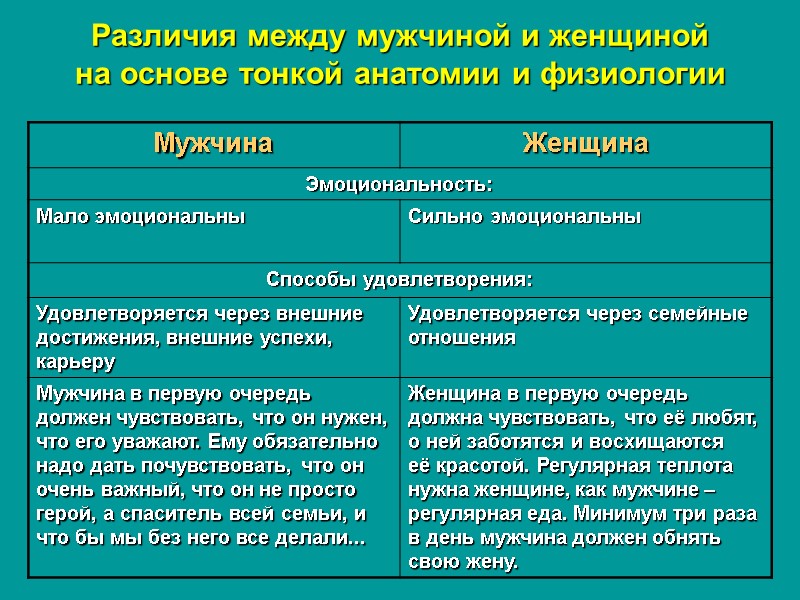 Различия между мужчиной и женщиной на основе тонкой анатомии и физиологии