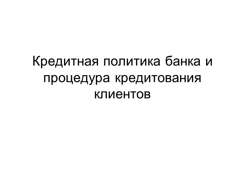 Кредитная политика банка и процедура кредитования клиентов Сдерживающие
