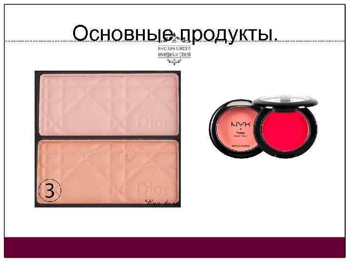 Последовательность. • • • Увлажнение кожи лица, глаз, губ Нанесение праймера по типу кожи. Нанесение тона и жирная коррекция Нанесение праймера (консилера) на веки Нанесение теней натуральных оттенков (светлый на подвижное, темный на складку) Подводка ресничного контура. (черный/коричневый) Нанесение консилера под глаза (розовый, светло-бежевый) Работа с бровями (карандаш, тени, гель) Макияж губ (карандаш и помада натурального цвета) Закрепление макияжа (пудра) Нанесение румян (роза, персик) Нанесение хайлайтера (светлый, золотой, розоватый)