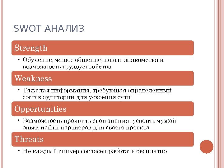 ИСПОЛЬЗОВАННЫЕ РЕСУРСЫ И ТЕХНОЛОГИИ Данный проект развивается в сфере услуг и следовательно основным капиталом нашего проекта являются люди. Каждый раз выступает новый спикер, однако в случае особо теплого приема аудиторией спикера мы можем пригласить его повторно. В данном проекте нет ничего нового для нашего общества, однако это имеет и свои положительные последствия: мы имеем четко отработанную схему работы проекта проверенную не раз и не нами. Это серьезно уменьшает издержки работы.
