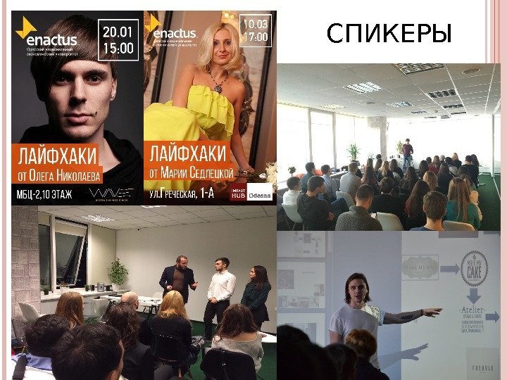 ВВЕДЕНИЕ Лайфхаки богатых и успешных одесситов – проект, который был разработан на базе «Енактус ОНЭУ» . Сущность проекта – проведение платных лекций на темы, не затрагиваемые в учебниках и по сути открытые, т. к. каждая лекция – творческая импровизация каждого из приглашаемых спикеров и часто включает личные истории успеха. Проект был создан 20 декабря 2015 года