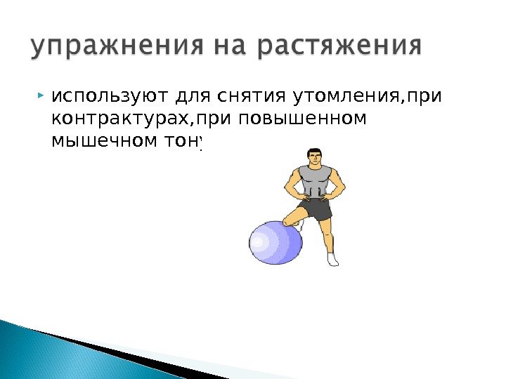 используют для снятия утомления, при контрактурах, при повышенном мышечном тонусе.