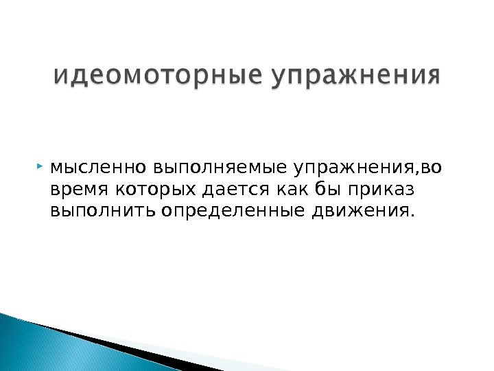 мысленно выполняемые упражнения, во время которых дается как бы приказ выполнить определенные движения.