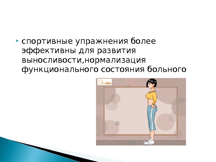 спортивные упражнения более эффективны для развития выносливости, нормализация функционального состояния больного
