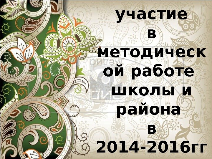 Мое участие в методическ ой работе школы и района в 2014 -2016 гг.