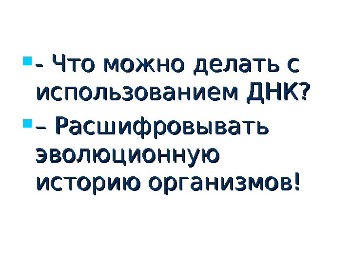 n- Что можно делать с использованием ДНК? n – Расшифровывать эволюционную историю организмов!