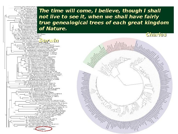 The time will come, I believe, though I shall not live to see it, when we shall have fairly true genealogical trees of each great kingdom of Nature. Charles Darwin
