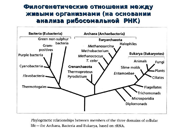 Филогенетические отношения между живыми организмами (на основании анализа рибосомальной РНК)