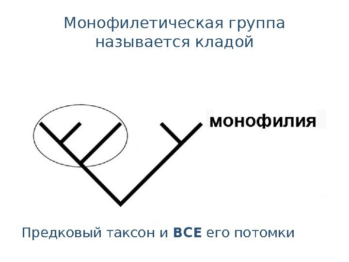 Монофилетическая группа называется кладой Предковый таксон и ВСЕ его потомки