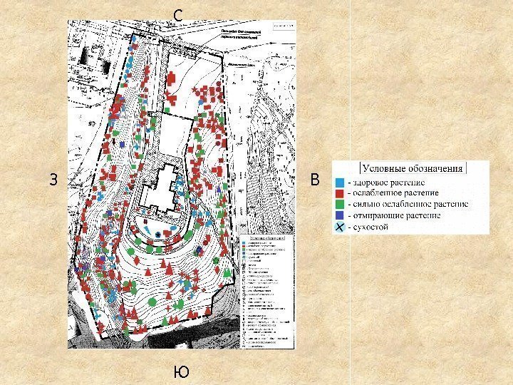 Заключение • Отмечено характерное для данной местности распределение по семействам. Преобладающим по числу видов является семейство розовые ( Rosaceae); • Экологическая структура древесной и кустарниковой флоры характеризуется преобладанием полутеневыносливых мезофитных морозостойких мегатрофных видов, соответствующих экологическим условиям изучаемой территории; • Особенность возрастной структуры большинства популяций древесных и кустарниковых видов – преобладание виргинильных особей; • Изготовлено 105 паспортов для особо ценных деревьев; • Разрабатываются рекомендации по пересадке и вырубке отдельных экземпляров деревьев, борьбе с вредителями и перспективе дальнейшего содержания древесно-кустарниковых насаждений на территории парка.
