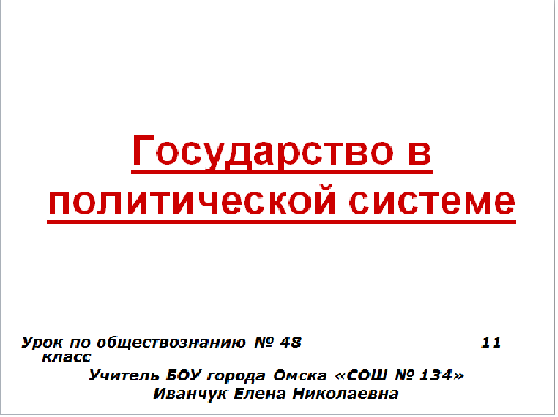 Презентация Государство в политической системе