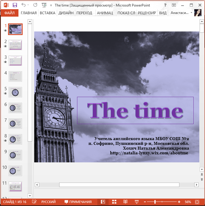 В данной презентации рассказывается об особенностях времени в английском языке: как сказать о том, что сейчас пятнадцать минут двенадцатого, полночь или полдень и так далее. Эта тема актуальна не только для учеников младших классов, но и для многих студентов первого курса, а также для тех, кто начинает изучать английский язык.