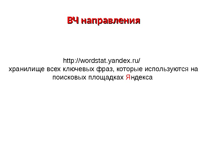 ВЧ направления http: //wordstat. yandex. ru/ хранилище всех ключевых фраз, которые используются на поисковых площадках Я ндекса