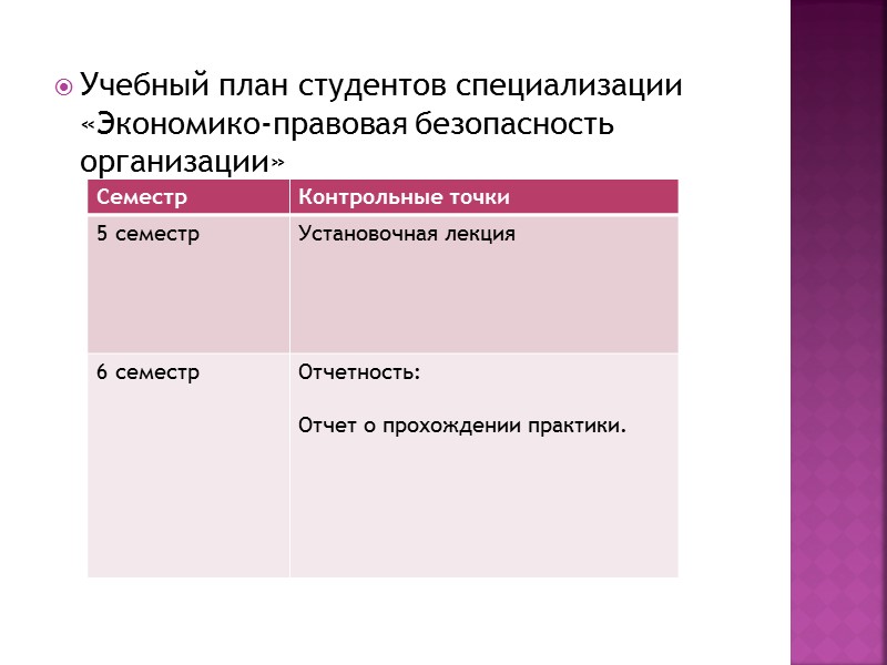 Учебный план студентов специализации «Экономико-правовая безопасность организации»