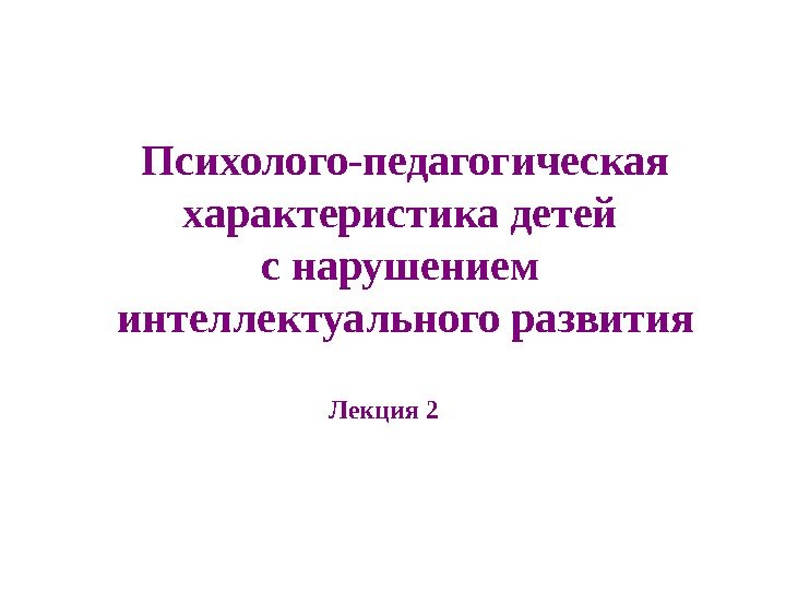 Описание презентации Психолого-педагогическая характеристика детей с нарушением интеллектуального развития Лекция по слайдам
