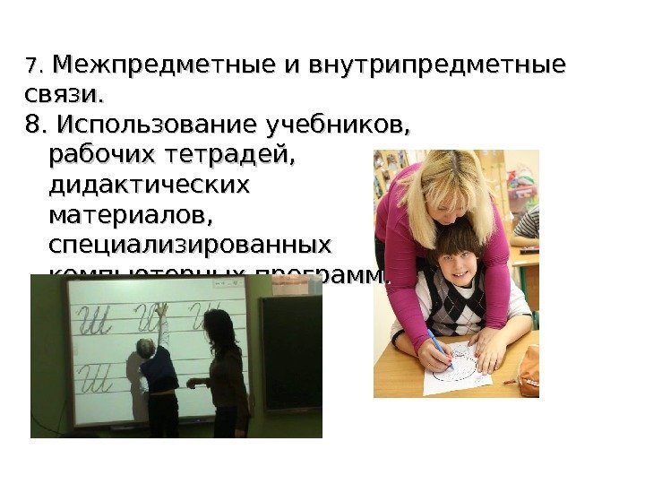 7. 7. Межпредметные и внутрипредметные связи. 8. Использование учебников, рабочих тетрадей, дидактических материалов, специализированных компьютерных программ.