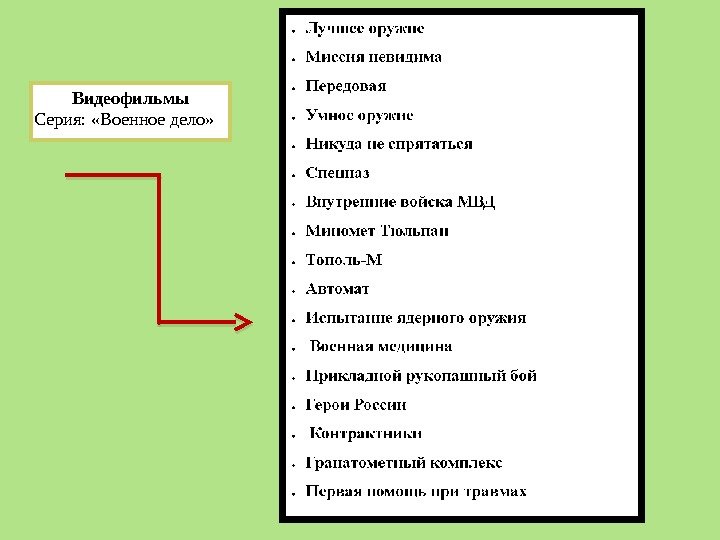 Видеофильмы Серия: «Военное дело»