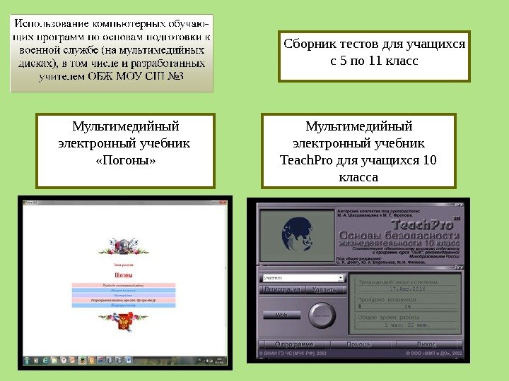 Мультимедийный электронный учебник «Погоны» Мультимедийный электронный учебник Teach. Pro для учащихся 10 класса. Сборник тестов для учащихся с 5 по 11 класс