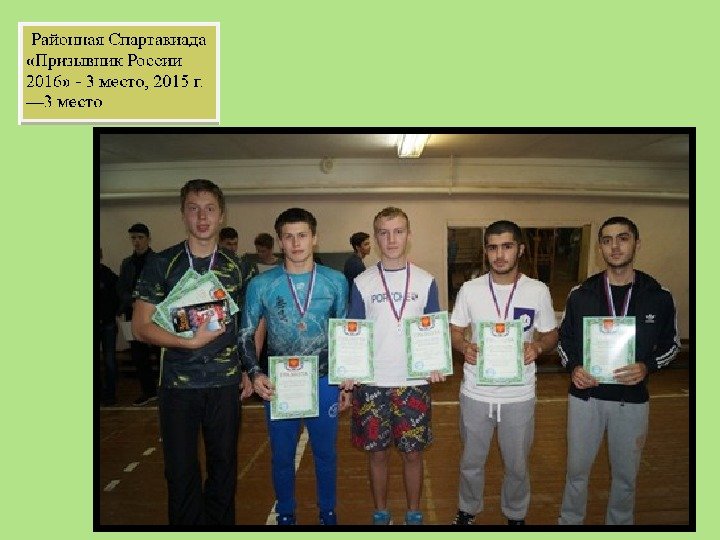 П р о в о д и м а я р а б о т а п о с о з д а н и ю и с о в е р ш е н с т в о в а н и ю у ч е б н о -м а т е р и а л ь н о й б а з ы п о о с н о в а м п о д г о т о в к и к в о е н н о й с л у ж б е Приобретение дисков по ОВС Приобретение интерактивного лазерного тира и тренажера для отработки реанимационных мероприятий Приобретение компасов, костюмов ОЗК и Л-1, приборов ВПХР и ДПГ – 5 В, вещмешков армейских, саперных лопат, носилок санитарных, котелков и термоса армейских 2014 год 2015 год 2016 год
