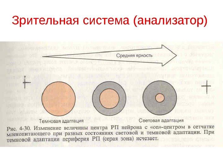 Рецептивные поля нейронов зрительной коры • Рецептивные поля нижних уровней зрительной системы (сетчатки, НКТ) круглые, в то время как рецептивные поля корковых нейронов имеют вытянутую форму и обладают ориентационной чувствительностью.