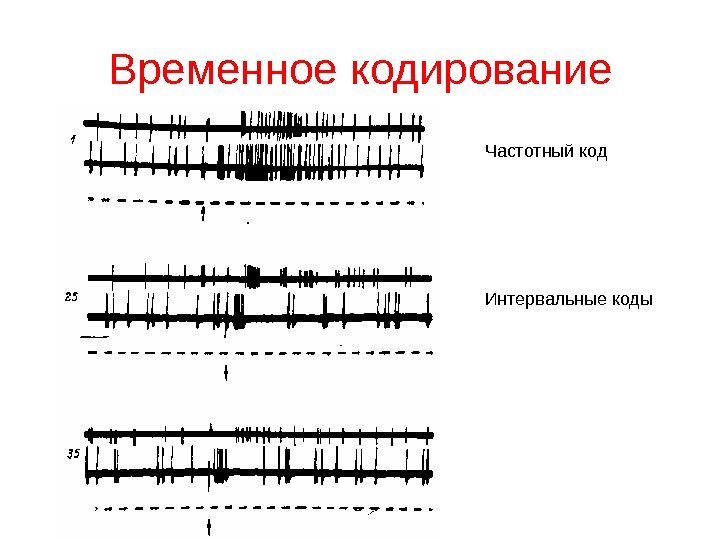 Кодирование информации — это установление соответствия между параметрами стимула и характеристиками ответной реакции системы Виды кодирования – — Частотное — пространственное