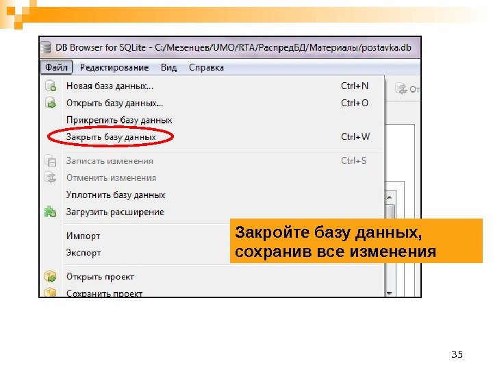 35 Закройте базу данных, сохранив все изменения