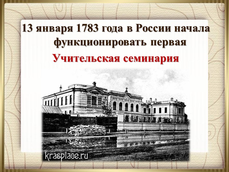 13 января 1783 года в России начала функционировать первая Учительская семинария