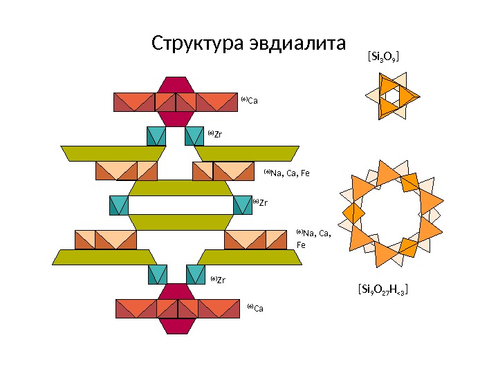 Структура эвдиалита [Si 9 O 27 H <3 ][Si 3 O 9 ] (6) Ca (6) Zr (6) Na, Ca, Fe (6) Zr (6) Na, Ca, Fe (6) Zr (6) Ca
