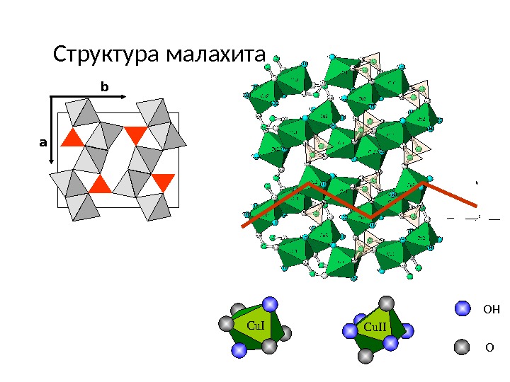 a b. Структура малахита Cu. II OOH