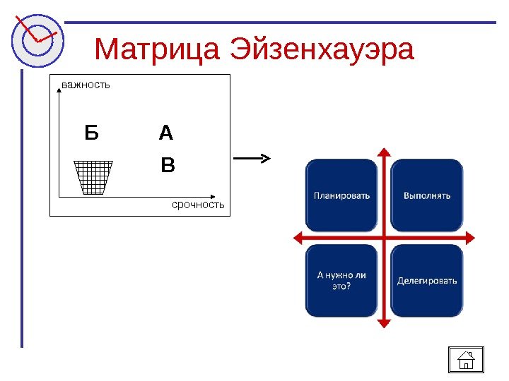 Матрица Эйзенхауэра важность Б А В срочность